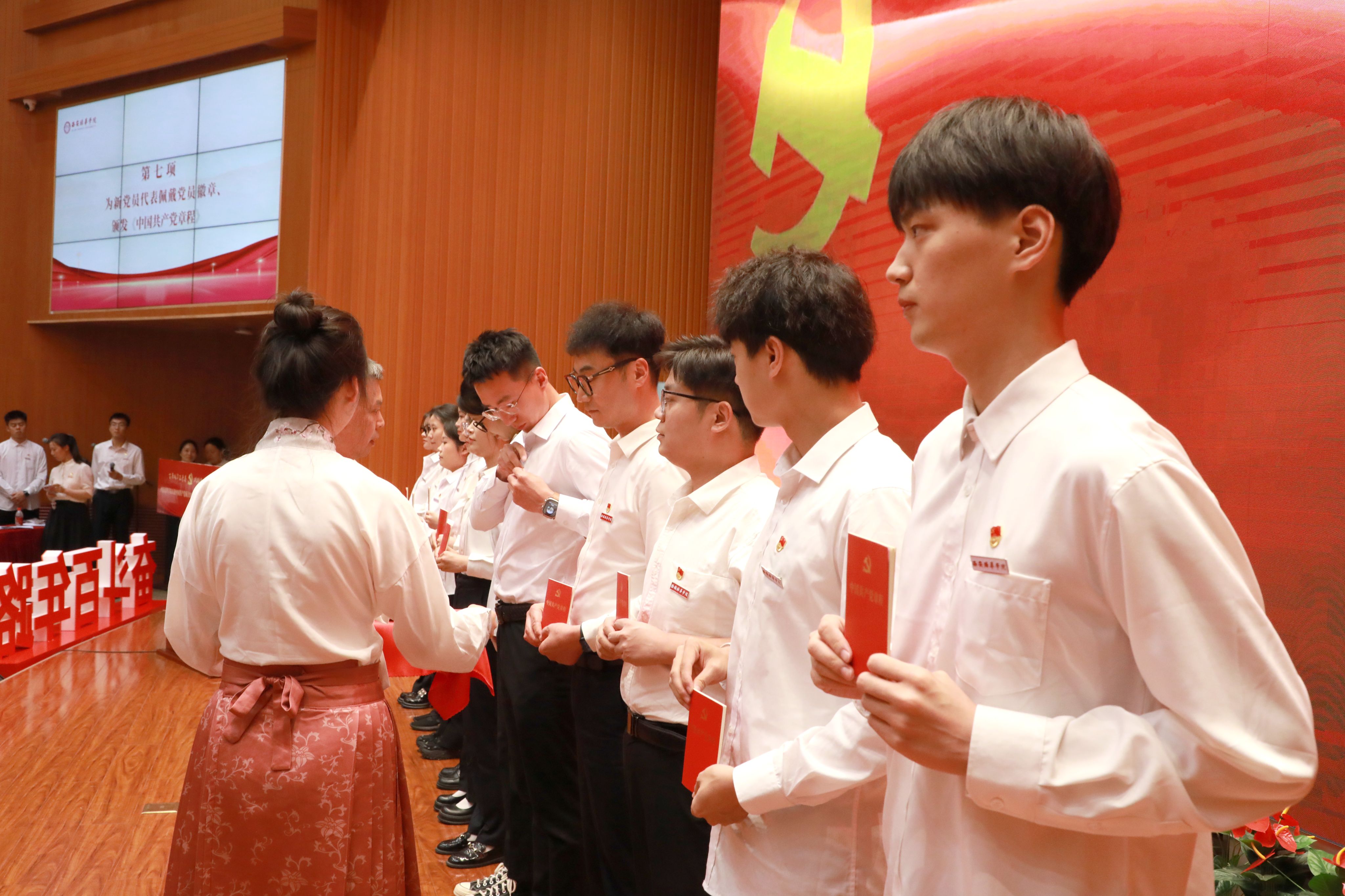 会上,党委学生工作部江俊瑞、医学院何丽为新党员代表佩戴党员徽章,颁发《中国共产党章程》;与会的新党员宣誓、老党员重温入党誓词,党委书记刘锋同志领誓。