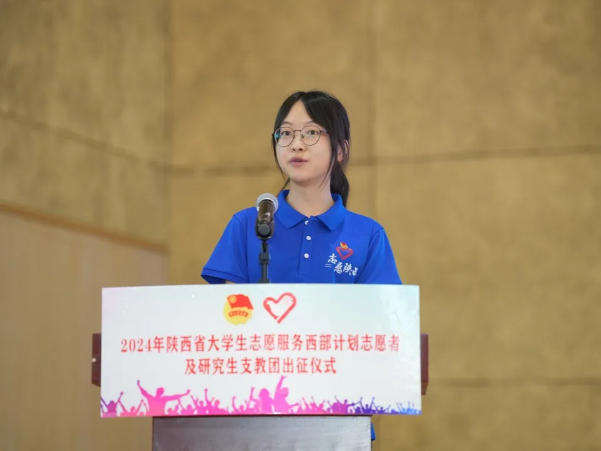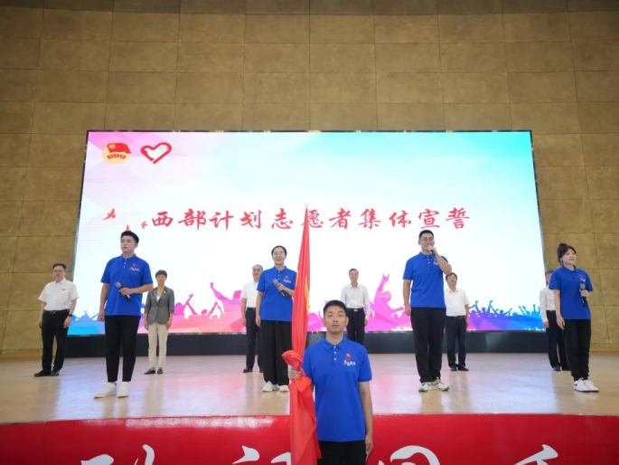 在本次出征仪式前期,团省委、省西部计划项目办还为2024年陕西省大学生志愿服务西部计划援藏、援疆志愿者举行了隆重的出征仪式。