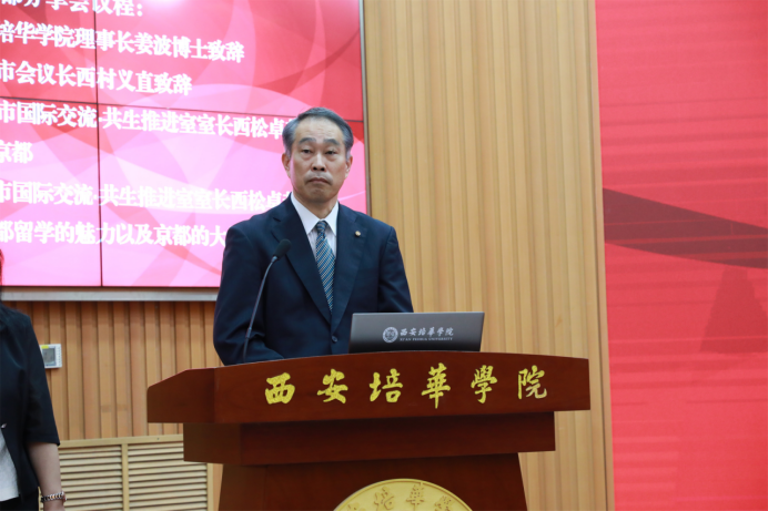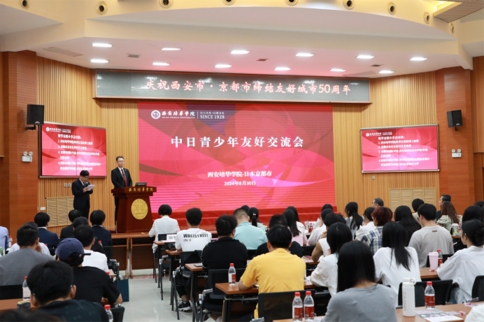 姜波理事长在致辞中,对京都市代表团一行的来访表示欢迎,对西安市与京都市结好50周年表示祝贺。他希望今后进一步加强中日两国青少年之间的交流,促进西安市与京都市、388vip太阳集团与京都市的高校之间的交流与合作。