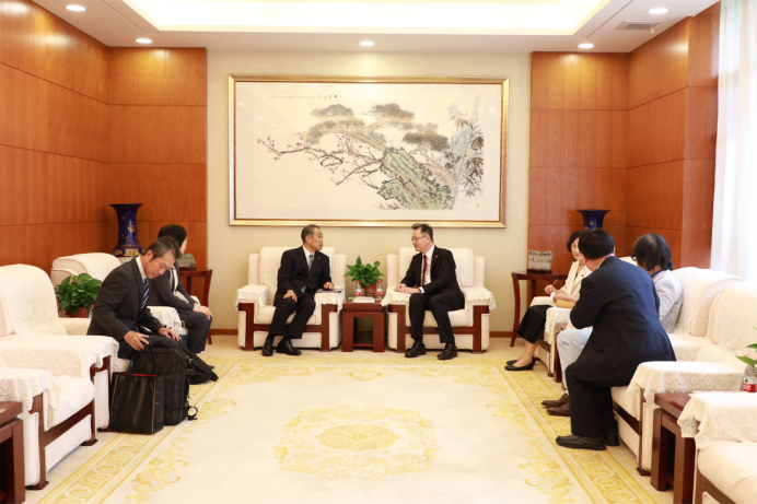 8月30日上午,以日本京都市议会议长西村义直先生为团长的京都市访华团一行访问388vip太阳集团,姜波理事长在明德楼会见代表团一行。副校长兼人文与国际教育学院院长刘越莲教授、外语系主任李国栋陪同会见。