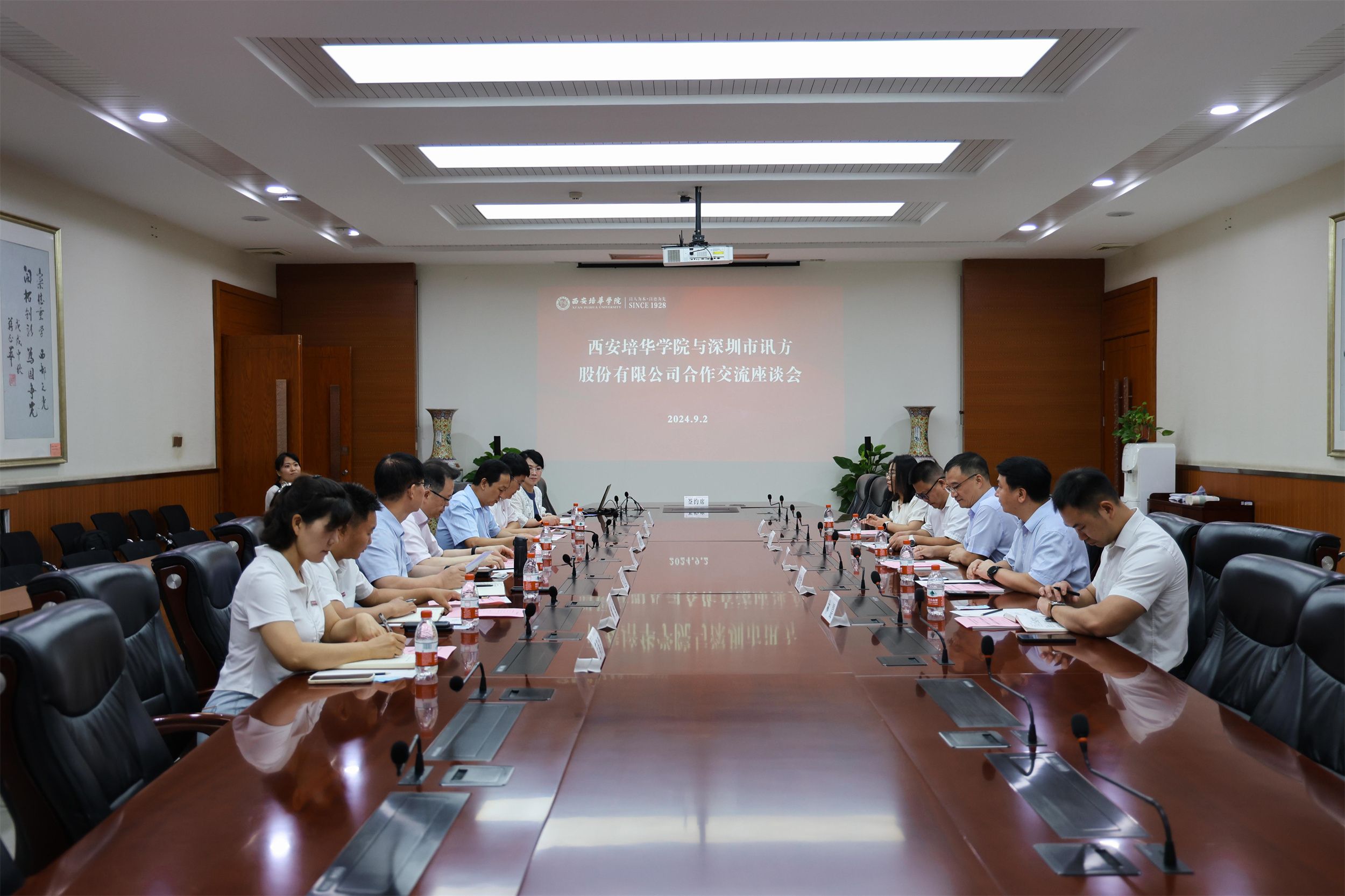9月2日上午,388vip太阳集团与深圳市讯方技术股份有限公司校企合作签约仪式在培华长安校区举行。该公司董事长戴毅、执行副总裁刘铭皓、校企合作中心总监林晨、北部片区总经理杜红奎及陕西教育业务代表王姗姗,学校理事长姜波、校长助理兼智能科学与工程学院院长张运良、校长助理鲍伟、合作发展中心主任柳雨以及智能科学与工程学院常务副院长成立、毛莉君等参加仪式。常务副校长胡俊生主持仪式。