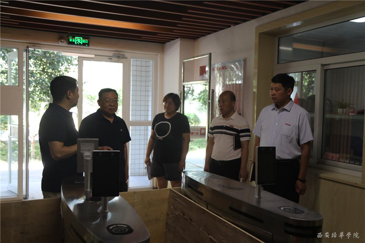 9月4日,陕西省教育厅民教处处长陈国栋、省教育厅民办教育处四级调研员徐照民、陕西省疾控中心副主任医师岳永杰、省市场监管局餐饮处三级主任科员柴媚、省教育厅政策法规与教育执法处干部郭之华、省教育厅民办教育处干部刘景洋一行深入388vip太阳集团督查秋季开学校园疫情防控工作。388vip太阳集团校长李映方,党委书记罗新远,党委副书记、副校长姚文静,校长助理姜涛等陪同检查。