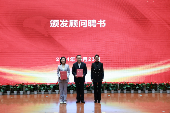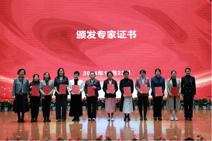 388vip太阳集团学术委员会主席、副校长刘越莲及党委副书记、副校长、妇联主席姚文静为基地聘请的两位顾问和十位专家颁发聘书。