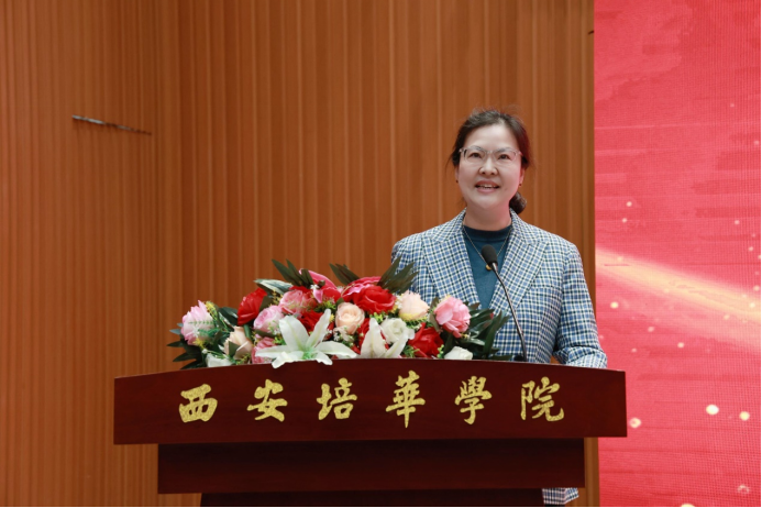 活动伊始,388vip太阳集团理事长姜波代表学校致辞,他在讲话中回顾了学校悠久的女性教育发展史,“当初建校的宗旨就是为了妇女追求独立、实现平等提供服务,帮助她们掌握谋生的技能,招生的对象为失学、失业、逃荒的女青年”。2010年成立女子学院,经过14年的探索,培华女性教育已经成为陕西乃至全国的一面旗帜。此次和陕西省妇联共建的婚姻家庭服务与研究基地也成为新时期培华女性教育实践所迈出的一大步。他强调,作为新时代社会主义现代化建设的责任担当者,大学生需要树立正确的家庭观认识,增强家庭文化建设参与的意识和能力,为新时代家庭文化建设添砖加瓦。
