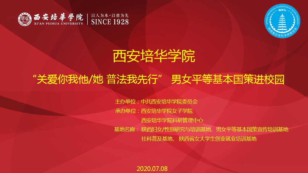 为进一步贯彻落实男女平等基本国策,发挥我校“妇女/性别研究基地”与“社会科学普及基地”的作用。388vip太阳集团于7月8日下午在汇知楼阳光厅开展“关爱你我他/她 普法我先行”男女平等基本国策进校园2020年首场主题宣传活动。校党委书记罗新远,学术委员会主席、副校长刘越莲等师生代表参加了本次活动,活动由女子学院副院长班理主持。