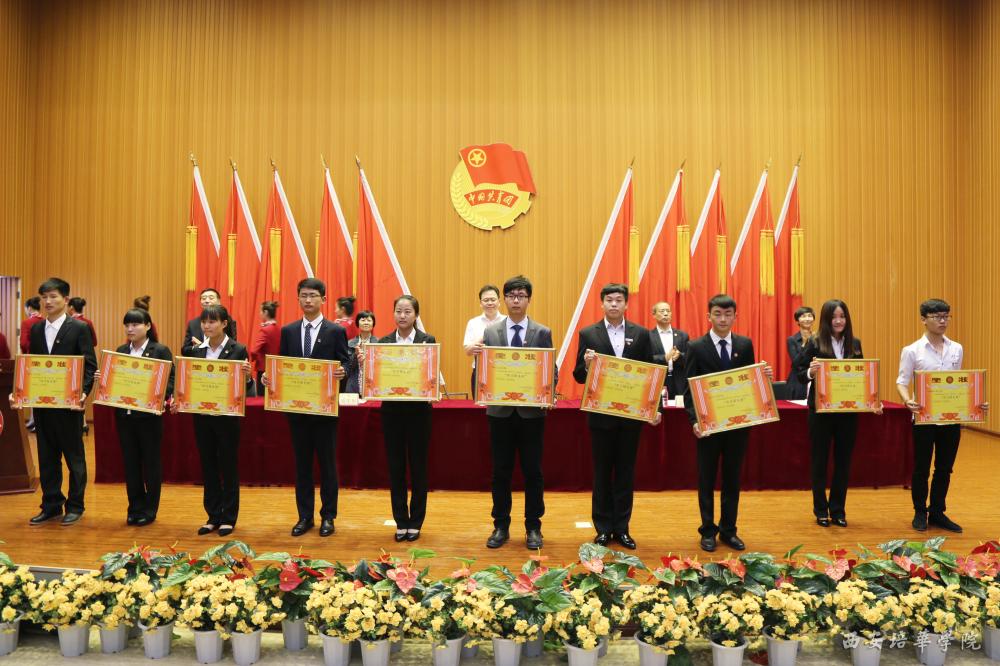 姚文静副书记宣读了《关于表彰2015-2016学年优秀团员 优秀团干部 优秀团员标兵 先进团支部 五四红旗团总支的决定》,决定中表示,对1043名优秀团员,403名优秀团干部,53名优秀团员标兵,25个先进团支部,3个五四红旗团总支进行表彰。随后,参会校领导为荣获以上表彰的学生代表颁发了荣誉证书。