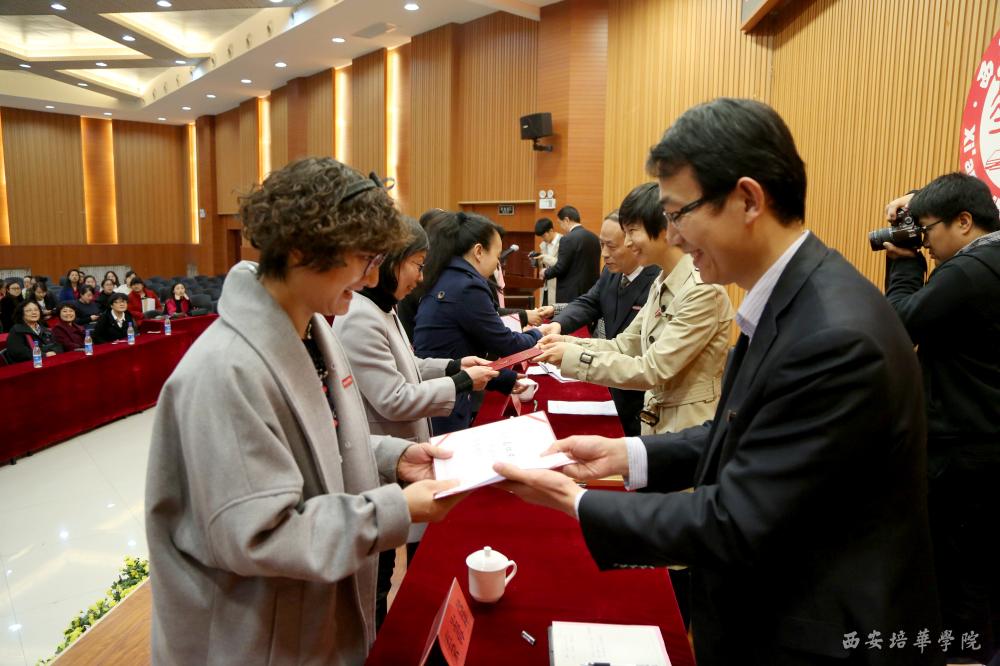 校长王拴才,党委书记周庆华,副校长、党委副书记姚文静,副校长于国亮,校长助理秦海锋等出席大会,副校长徐国富主持大会。我校姜波理事长发来贺信,向广大女教职工表示衷心的祝贺和诚挚的慰问。副校长、党委副书记姚文静宣读表彰决定,国际教育学院党总支书记梁蕊发言,阿甘·虹形象团队现场做了形象沙龙活动,并为获表彰的教师赠送丝巾。
