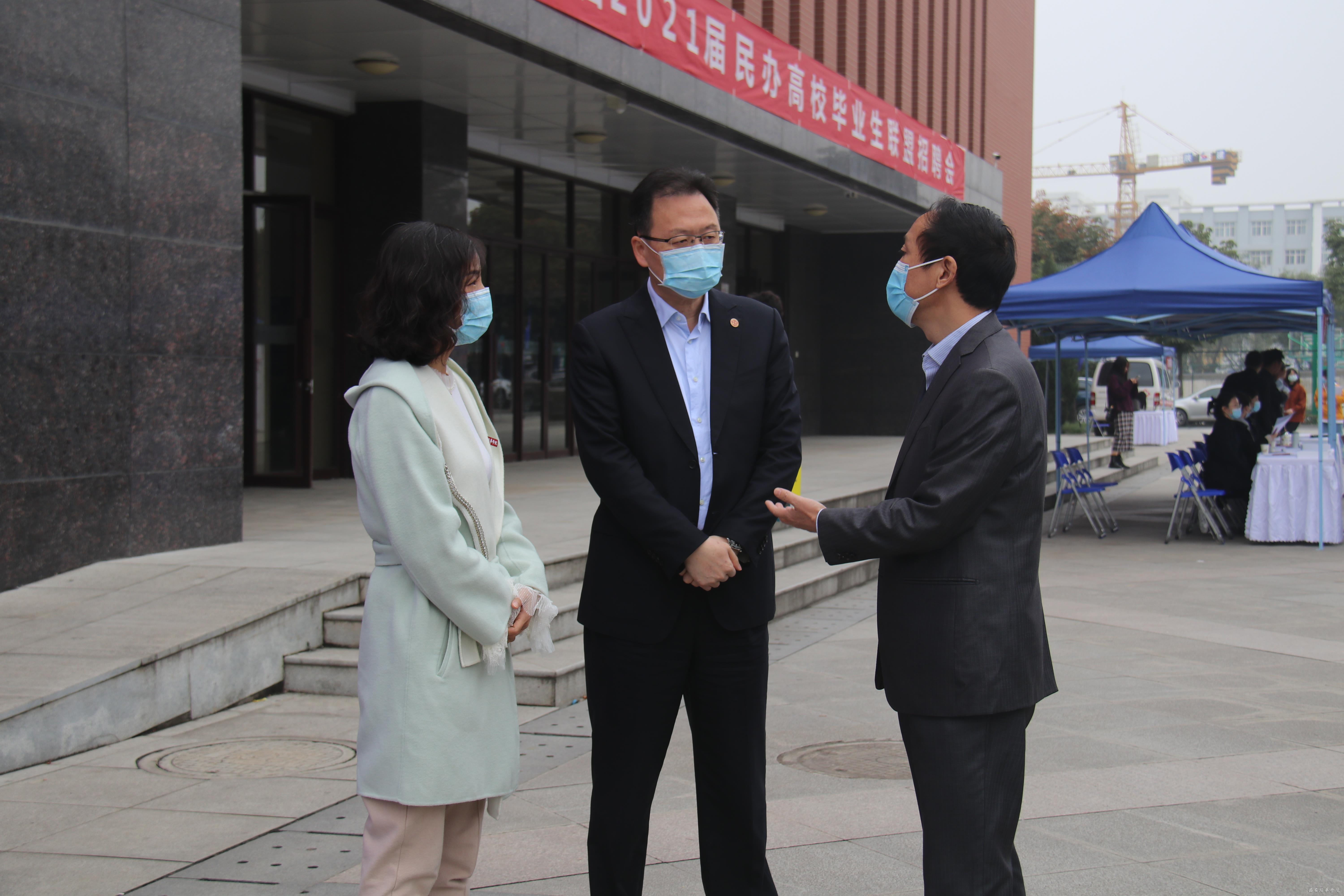 陕西省教育工委、陕西省教育厅一级巡视员朱征南走访了现场参会企业,与现场用人单位招聘负责人就招聘单位的人才需求、疫情对于单位招聘工作的影响以及对人才培养的意见建议等方面进行沟通。同时,对我校的就业工作给予充分肯定。
