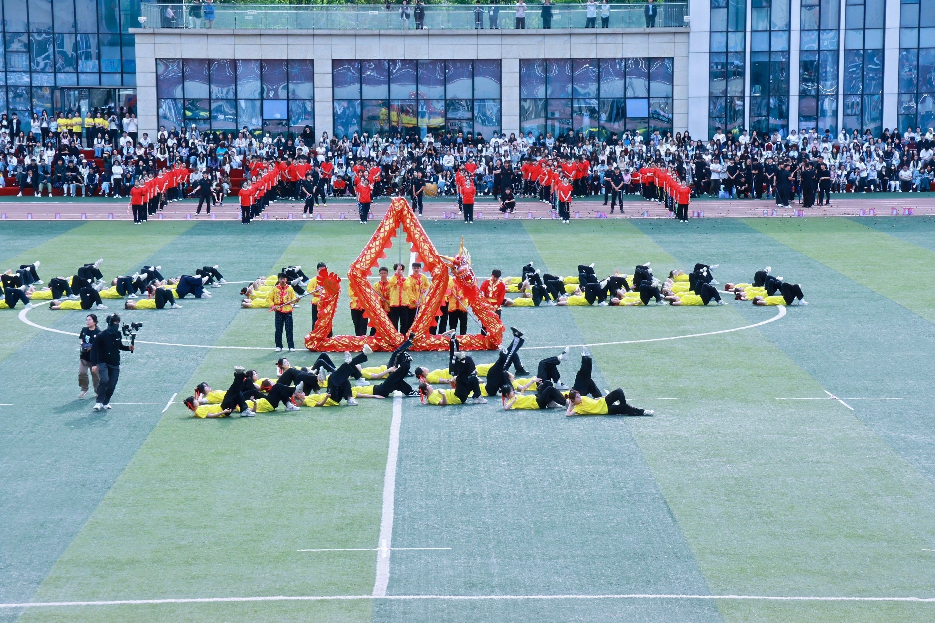 教职工方队化身粉色浪潮,144双手共绘樱花海,老师们秒变追风舞者,团队协作默契满分,欢笑与汗水交织成最萌年龄差表演。