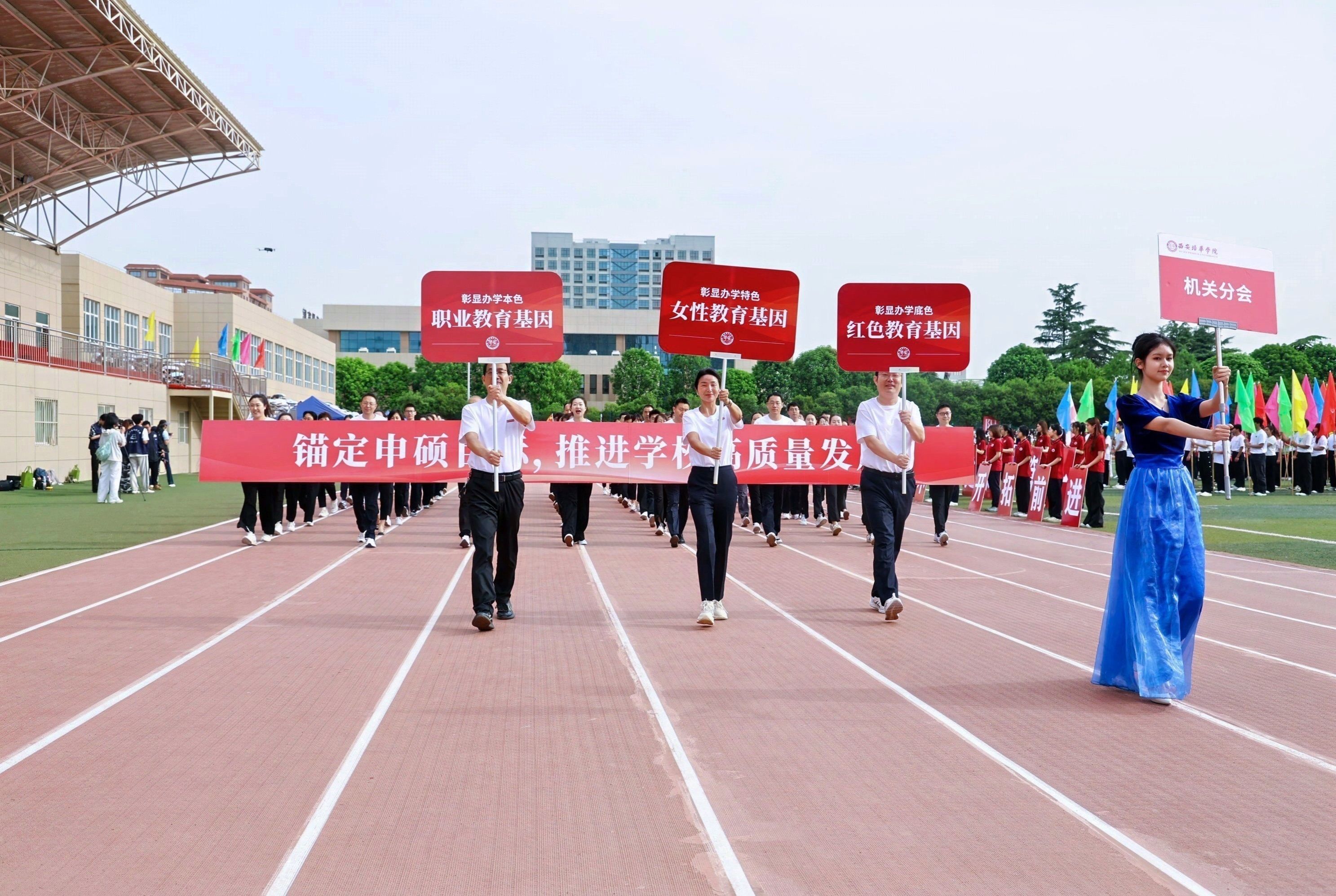 机关教工方阵高举培华,“职业教育、女性教育、红色教育”三大特色基因,锚定申硕目标,推进学校高质量发展,他们展育人者之担当,显奋进者之光芒,从培根铸魂的初心,到师生同心的凝聚,从百载峥嵘的积淀,到年华璀璨的绽放,他们以智慧为舟,以奉献为桨,在教育的星河中领航。