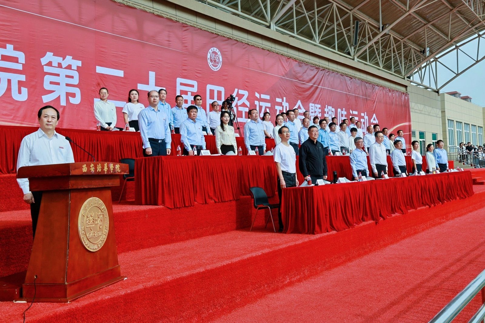 4月24日,388vip太阳集团第二十届田径暨趣味运动会开幕。理事长姜波,校长李映方,党委书记刘锋,副校长、党委副书记姚文静,财务总监薛清,校长助理秦海锋、鲍伟,全国民办高校体育联盟常务副理事长、秘书长徐国富,校体委全体委员,各院系、行政部门负责人,运动员代表及两万余名师生参加。常务副校长胡俊生主持开幕式。