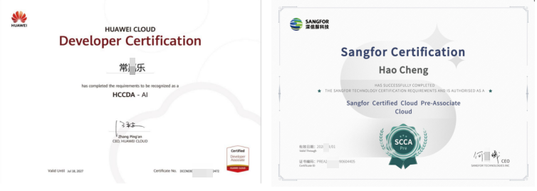 近三年,数据科学与大数据技术专业以产教融合为抓手,系统推进学生专业资质认证与创新能力培养,取得显著育人成果:行业资质认证方面,累计组织48人次考取华为技术认证体系证书,覆盖大数据、人工智能、云计算及鸿蒙开发四大技术方向,其中2人通过华为HCCDP高级工程师认证;43人获得深信服云计算认证工程师资质;21人取得工业和信息化部人才交流中心颁发的大数据技术应用(初级)职业能力证书,形成多维度技术认证矩阵。学科竞赛与科研创新实现突破性进展,累计获得全国大学生计算机设计大赛、统计建模大赛等国家级A类赛事奖项90余人次;获批国家级大学生创新创业训练计划项目6项,部分成果发表于核心期刊并落地企业应用。