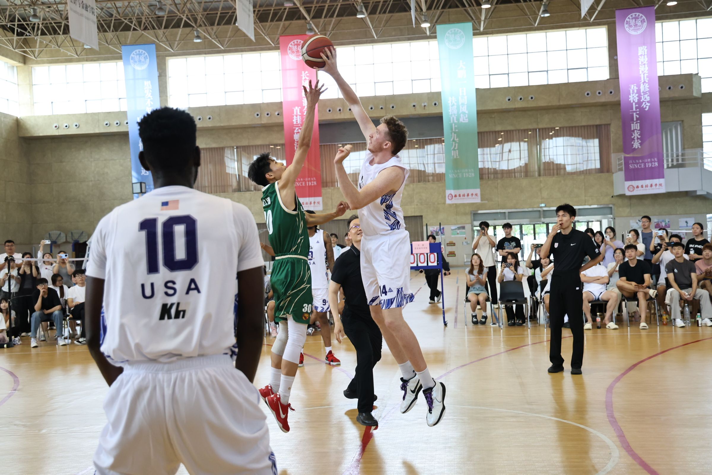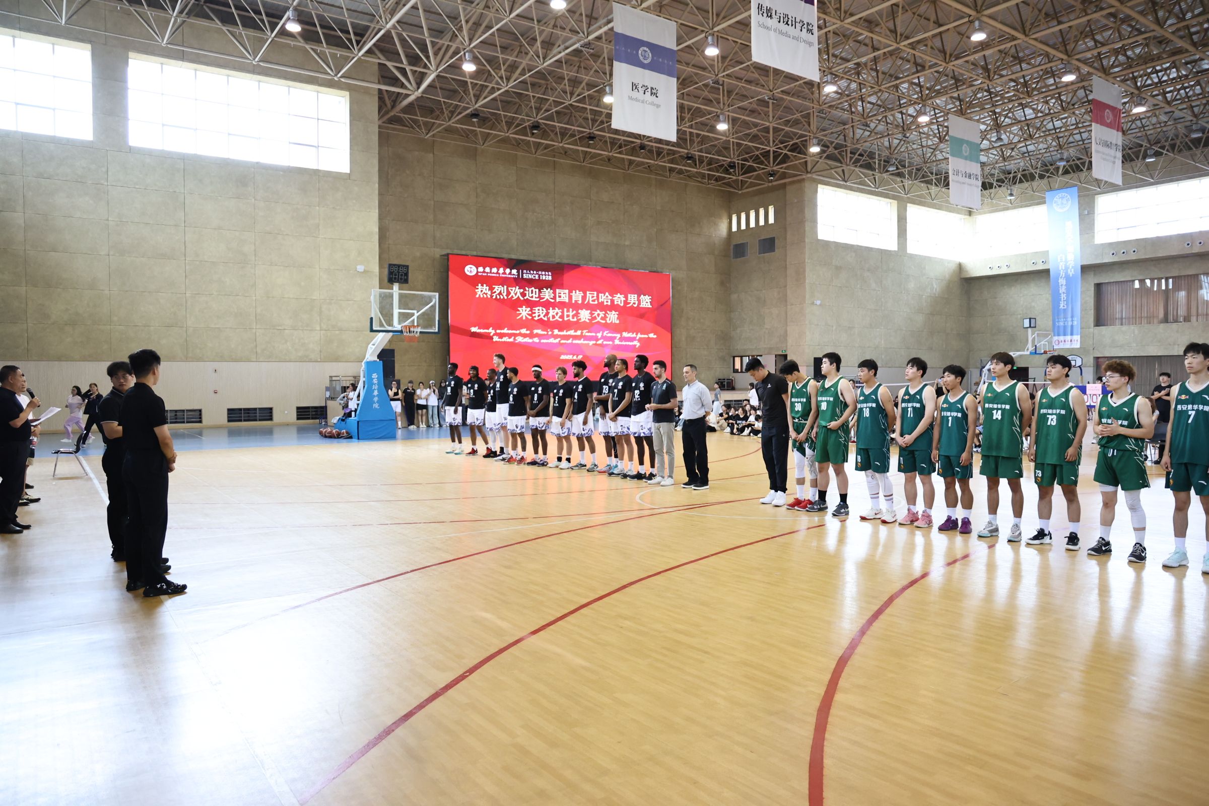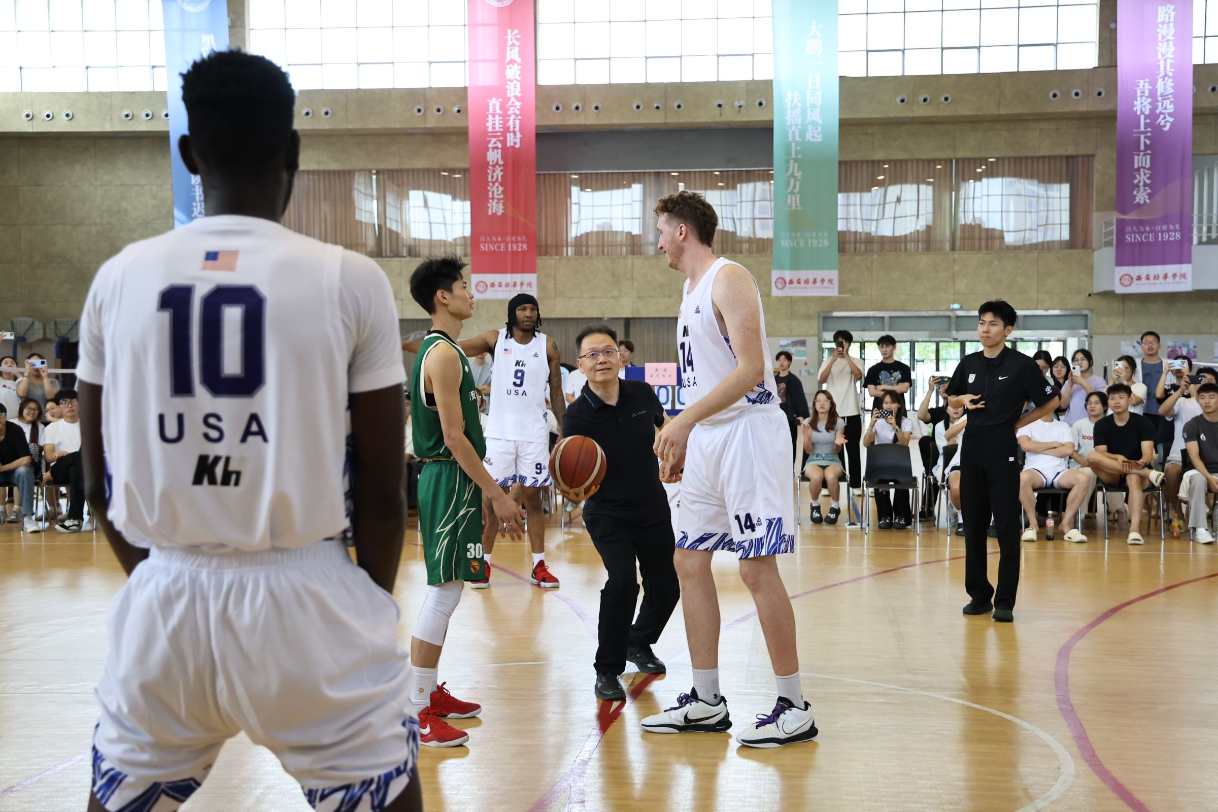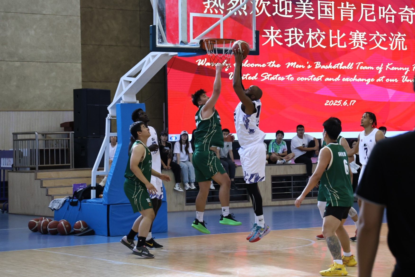 2025年 6月17日下午4时,美国肯尼哈奇男子篮球队到访388vip太阳集团,与培华篮球队在体育馆展开了一场精彩纷呈的篮球交流赛。此次活动由徐国富教授主持,388vip太阳集团理事长姜波,体育学院院长王志强,党总支书记兼行政副院长马德厚,大学体育部部长刘利锋等领导出席。