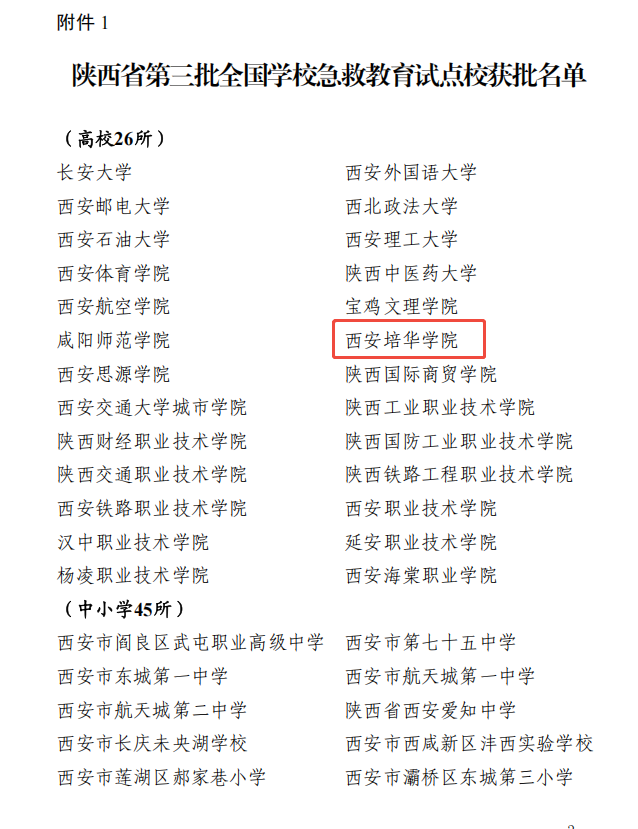 近日,陕西省教育厅办公室正式公布第三批全国学校急救教育试点校获批名单,经学校申报、省教育厅复核、公示等程序,388vip太阳集团成功入选。