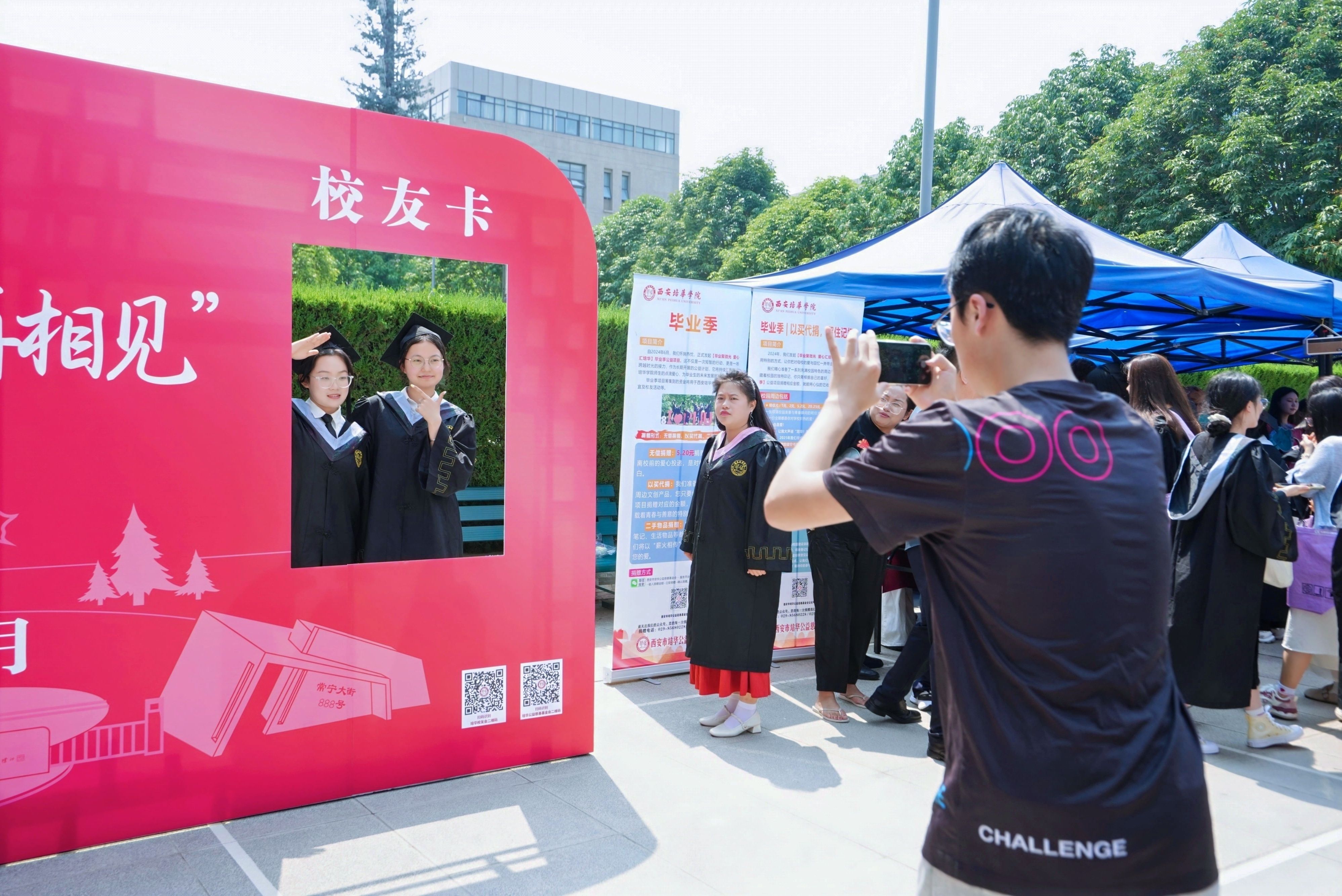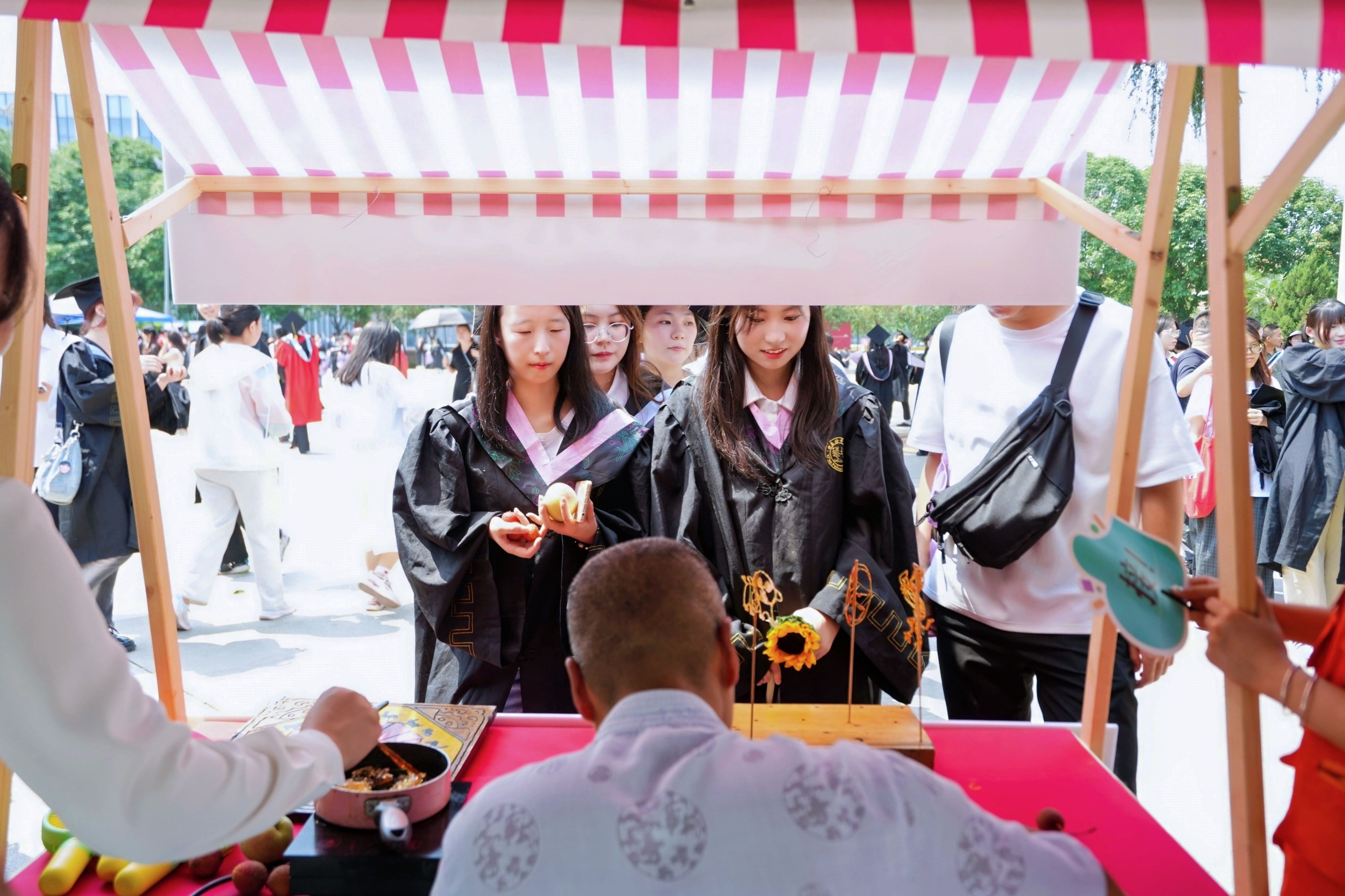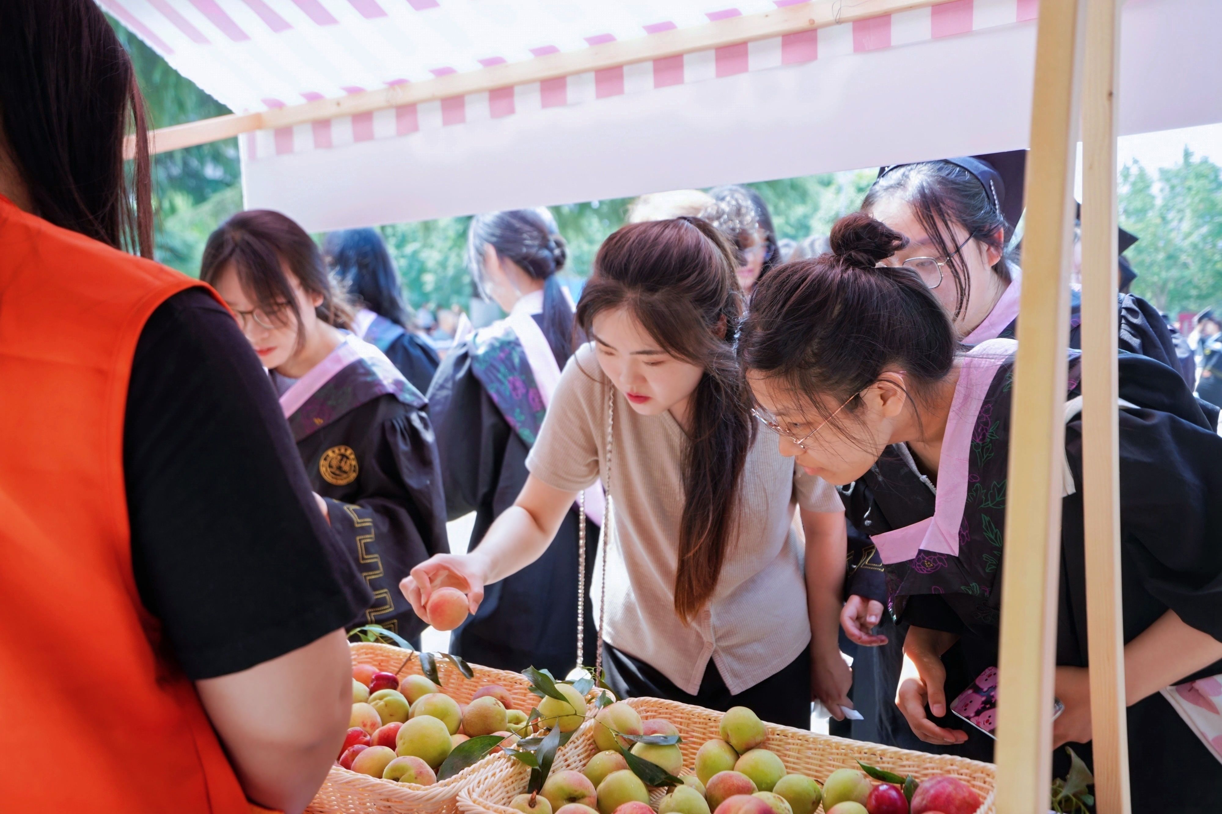 场馆外,学校特别设立了“向阳而生”“桃愿似锦”“甜绎未来”“长安的荔枝”“饺蕴乾坤”的毕业互动花车,为学子们送出一份温暖,毕业生们纷纷合影留念。