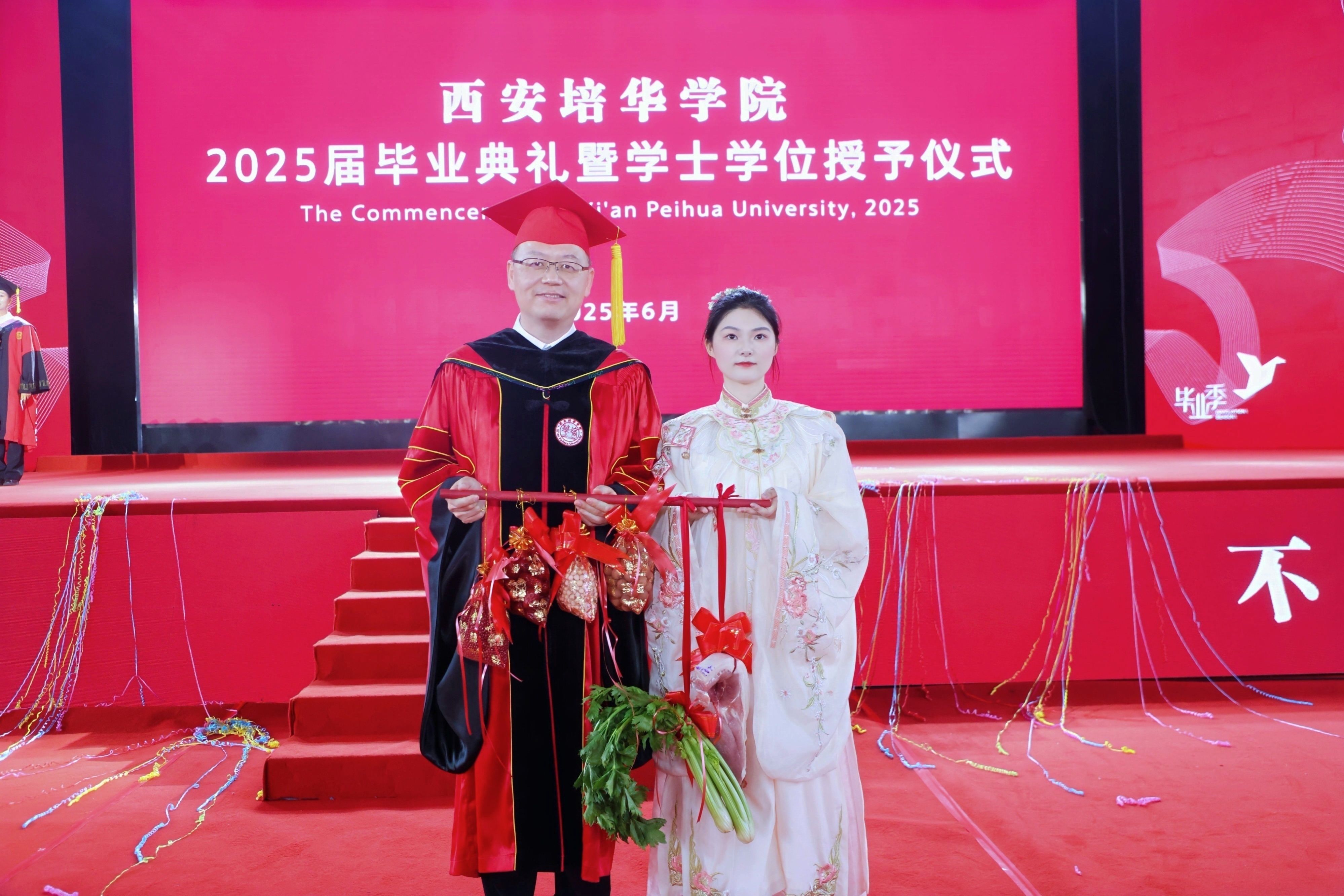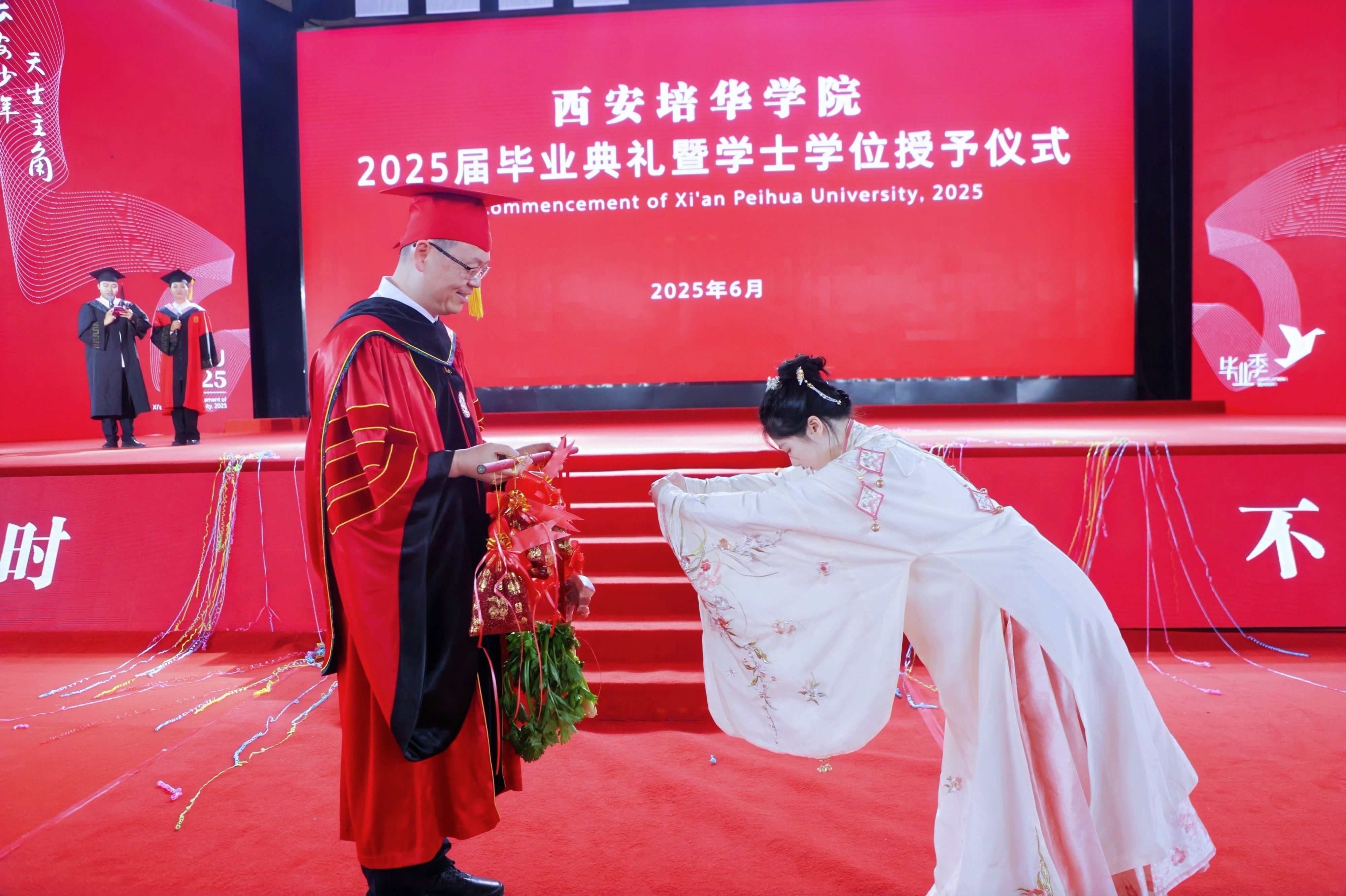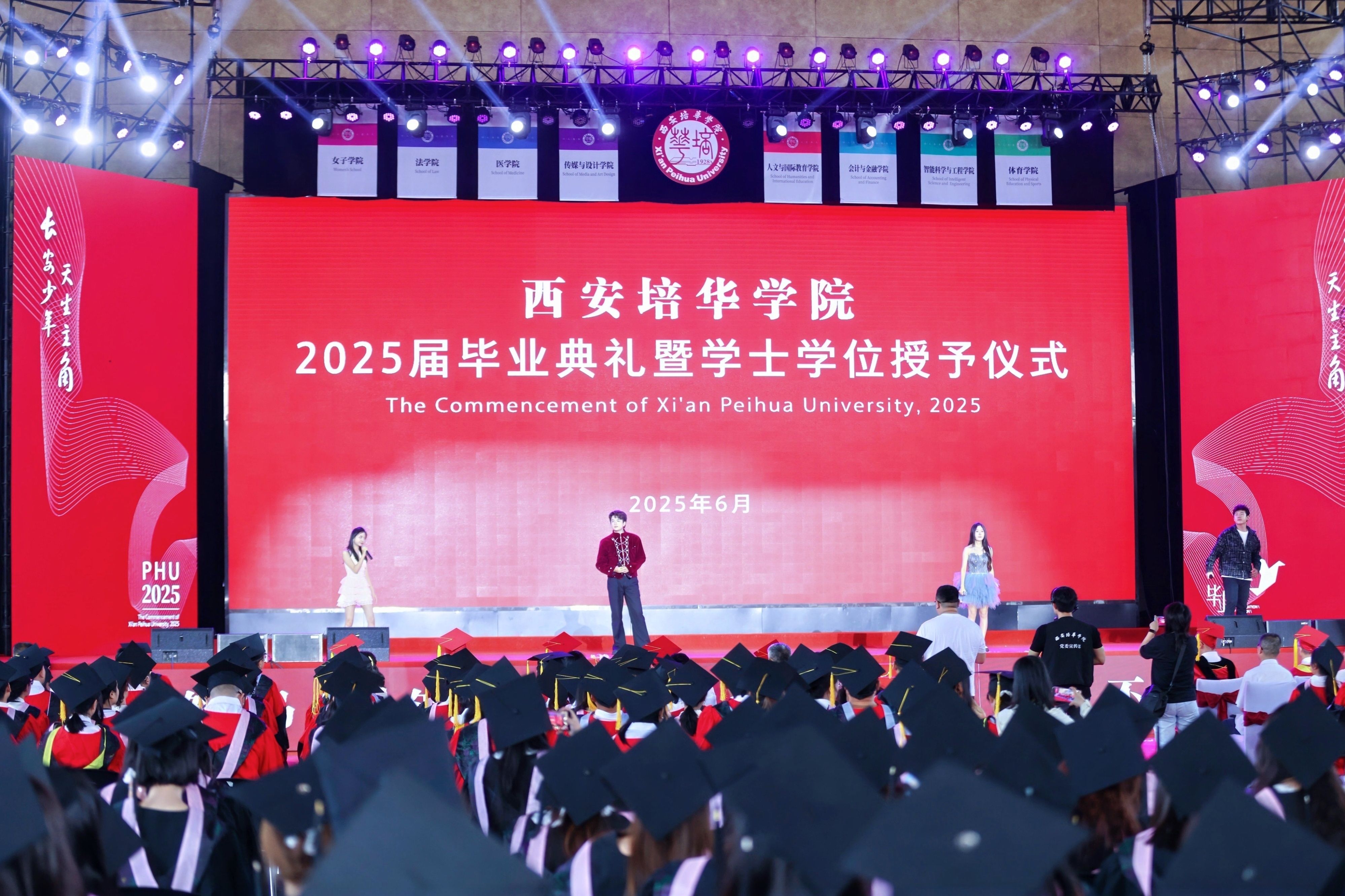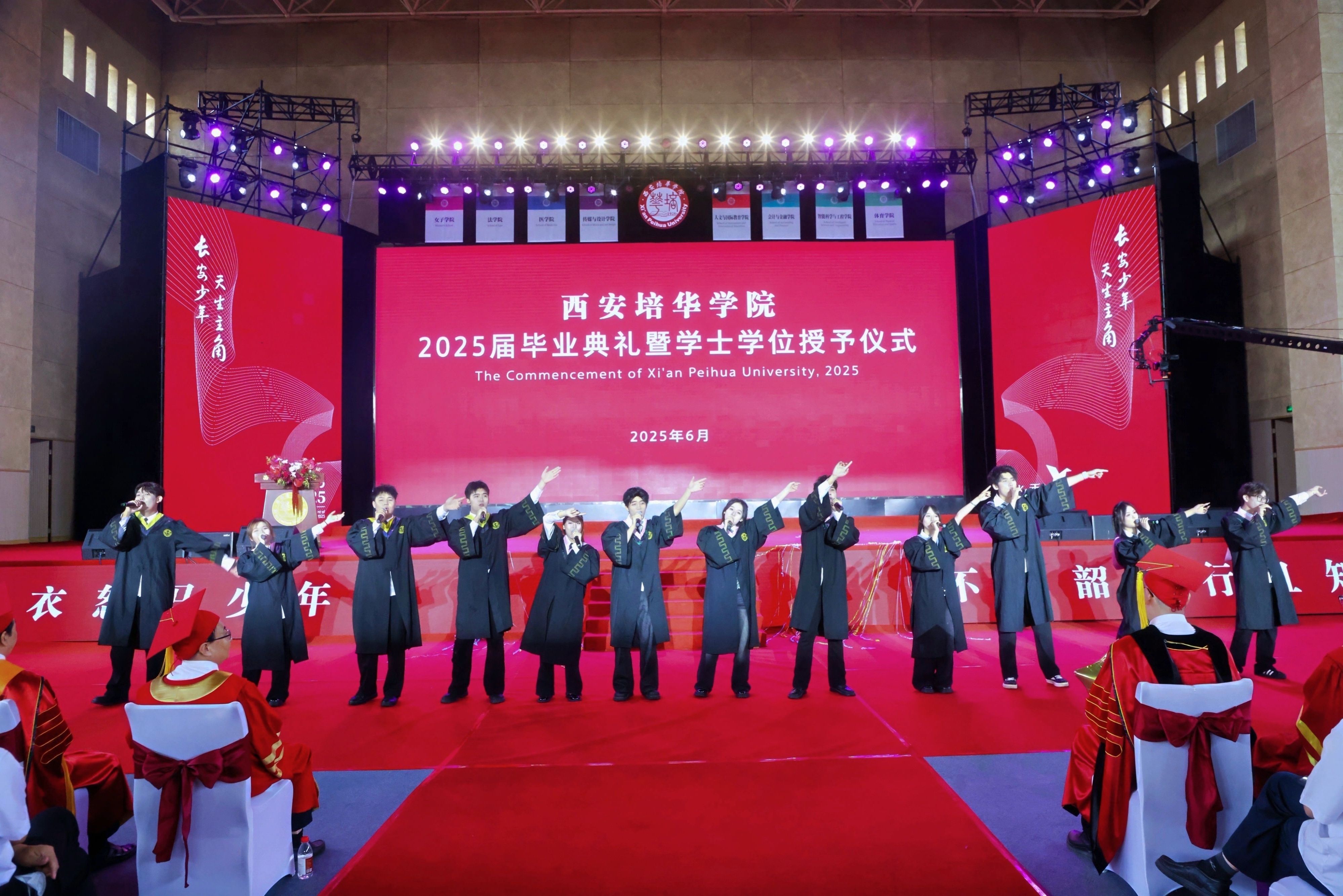 典礼在音诗画情景表演《七律·毕业季——过秦俑有寄》中拉开序幕。悠扬的旋律、深情的朗诵与富有张力的舞台画面交织融合,将百年培华的厚重底蕴与当代青年的蓬勃朝气巧妙联结。