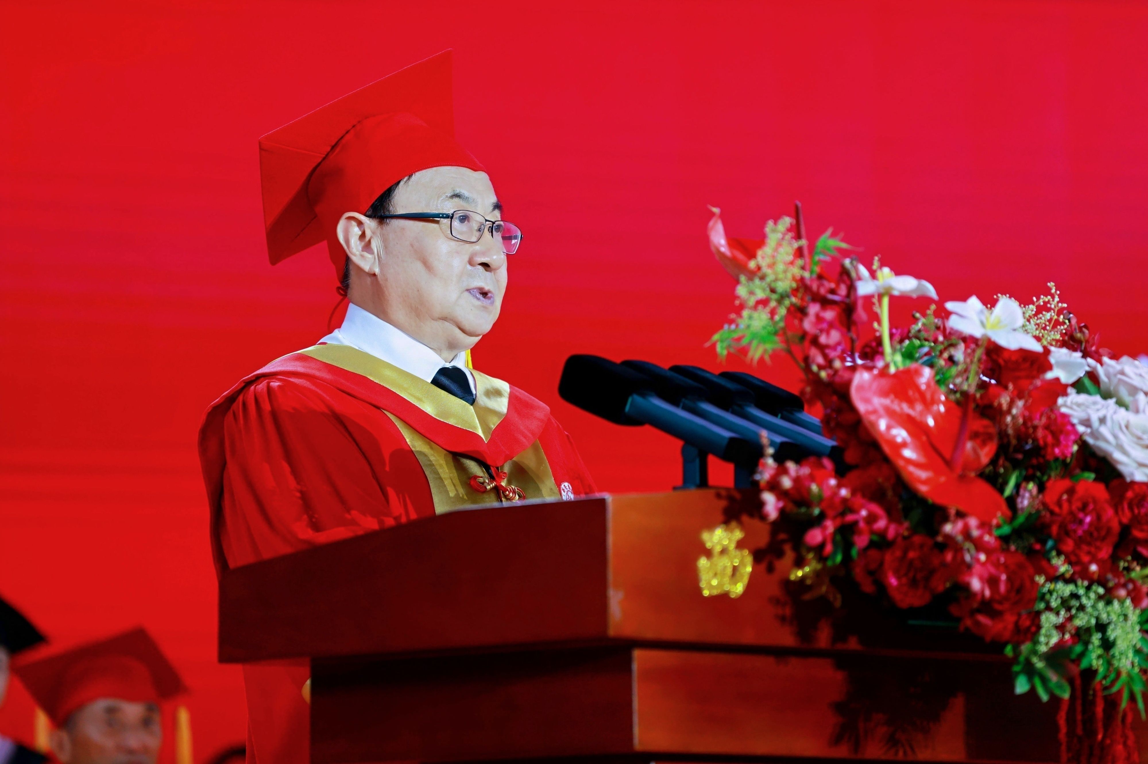作为培华的大家长,姜波理事长发表了情真意切、立意高远的讲话,为毕业生们上了最后一堂课。他代表学校向圆满完成学业的全体2025届毕业生表示祝贺,向全体教职员工致以敬意,向家长朋友们表示感谢。他以20世纪50年代老校友们扎根基层的成长经历为例,鼓励毕业生们要到基层去、到祖国需要的地方去。他向毕业生们提出四点希望:一是品德为先,懂得珍惜。感恩父母养育,关爱家中长辈,做一个有温度、有责任感的人。二是终身学习,勇于创新。不能满足于现有知识,要紧跟国家与世界发展趋势,持续提升专业能力,勇于突破,成为复合型人才。三是重视健康,保持活力。身体是幸福的基础,在快节奏时代务必珍视身心健康,保持积极乐观。四是脚踏实地,从零开始。放下过往成绩,以归零心态和坚定信念面对未来,在坚持中历练成长。在讲话的最后,他邀请毕业生们于2028年重返母校,一起见证学校的百年华诞。