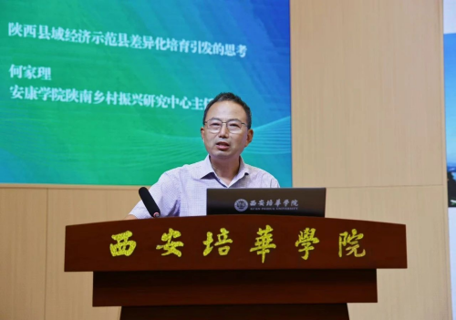 陕西省经济学学会会长、西安邮电大学张鸿教授讲话。他强调,乡村振兴是现代化关键任务,县域经济是城乡融合与共富支撑。陕西在乡村振兴实践中成果显著,但面临区域失衡等挑战。他呼吁以论坛为契机,深化理论实践交流,探索契合陕西与西部特色的乡村振兴新路径。