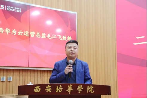 陕西华为云运营总监毛江飞在致辞中提到,经过长期努力现已落地了11所鲲鹏产业学院,华为鲲鹏产业学院将推动校企双方在鲲鹏生态、华为云、大数据和人工智能等新一代信息技术领域进行深度合作,培养高质量的鲲鹏产业人才。