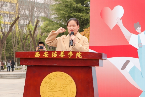 学生潜能发展中心教师代表带领现场师生进行《善爱我》宣誓,为善待自己、关爱他人、尊重生命郑重承诺。
