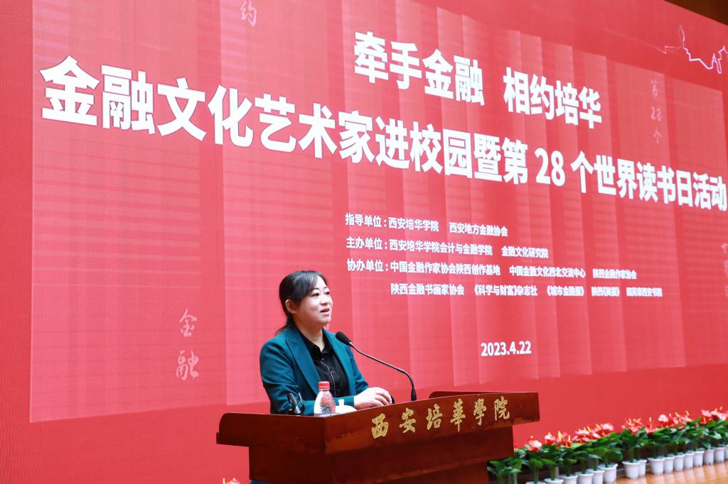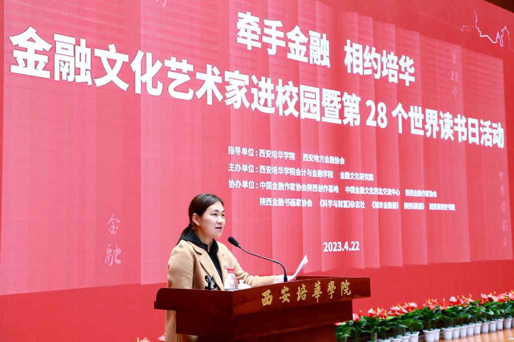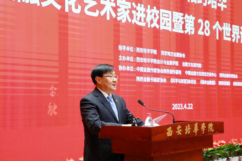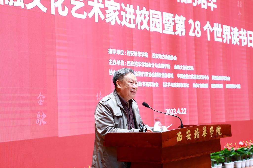 4月22日,“牵手金融,相约培华”文化艺术家进校园暨第28个世界读书日活动在388vip太阳集团举行。本次活动由388vip太阳集团会计与金融学院、金融文化研究院主办,西安地方金融协会会长王西省,陕西省诗词学会常务副会长商子秦,西安交通大学高培中心主任黎荔等出席会议并致辞。