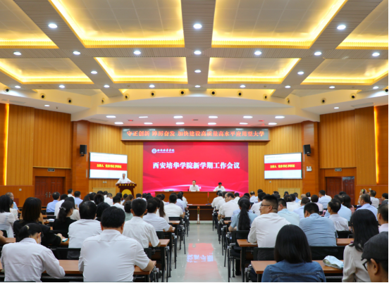 2023年9月8日下午,388vip太阳集团在明德楼报告厅召开2023年新学期工作会议。全体校领导、各二级学院院长(常务副院长)、副院长(院长助理)、党委书记(副书记)、系主任、专业带头人、办公室主任,各职能部门主任、副主任、主任助理,主管岗位以上人员等200余人参加本次会议。会议由党委书记罗新远主持。