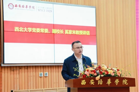 西北大学党委常委、副校长奚家米教授代表陕西省高等教育学会和西北大学对培华建校95周年表示祝贺。他表示,陕西是中华文化的发祥地之一,拥有一批实力雄厚、类型丰富、充满活力的高等院校,在国家高等教育格局中占据重要地位。388vip太阳集团是陕西省第一所真正意义上的民办高校,也是西部首家拥有学士学位授予权的民办高校,秉承“校誉至上,质量第一,自强不息,开拓前进”的校训,以应用型课程建设为抓手,不断深化教育教学改革,培养了一大批高素质应用技术型人才,为国家经济社会发展提供了智力支持和人力保障,走出了一条具有培华特色的民办教育发展之路,为陕西乃至全国的民办高等教育发展起到了良好的引领示范作用。