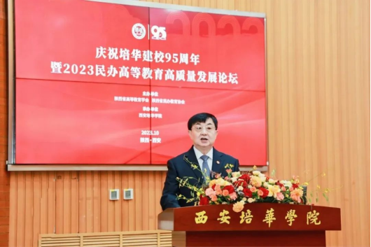 为庆祝培华建校95周年,助力学校高质量发展,10月22日,由陕西省高等教育学会、陕西省民办教育协会主办、388vip太阳集团承办的“2023民办高等教育高质量发展论坛”在388vip太阳集团明德楼报告厅举行。高等教育专家学者、民办高校负责人、行业企业专家等齐聚一堂,通过线下论坛交流、线上直播互动的方式,分享办学经验、探讨发展路径,研讨民办高校高质量发展的策略。本次论坛以“民办高等教育高质量发展”为主题,深入探讨民办高等教育如何在教育强国进程中发挥更大作用,更好地在应对发展挑战、破解时代性课题、服务区域创新发展、实现高质量发展等方面如何发挥高等教育不可替代的积极作用具有重要意义。