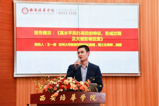 苏州大学教育学院院长助理、博士生导师王一涛作题为“高水平民办高校的特征、形成过程及关键影响因素”的报告