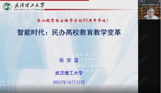 武汉理工大学原副校长、博士生导师张安富教授作题为“智能时代:民办高等教育教学变革”的报告