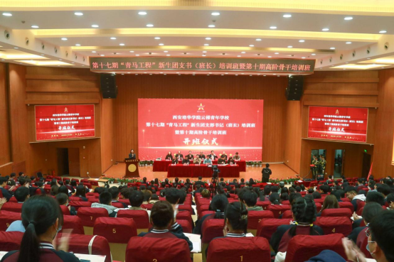 党委学工部部长、学生服务中心主任蔡亮,团中央讲师团成员、西北大学团委副书记齐钊,党委学工部副部长、学生服务中心副主任姚斌、权勇太,云梯青年校长、校团委书记杨媛,二级学院党委(党总支)书记、副书记出席本次大会。同时,校团委全体同志、各二级学院团委书记、云梯青年学校分校负责同志以及第十六期青马工程参训学员共计400余人也一并参加开班仪式。