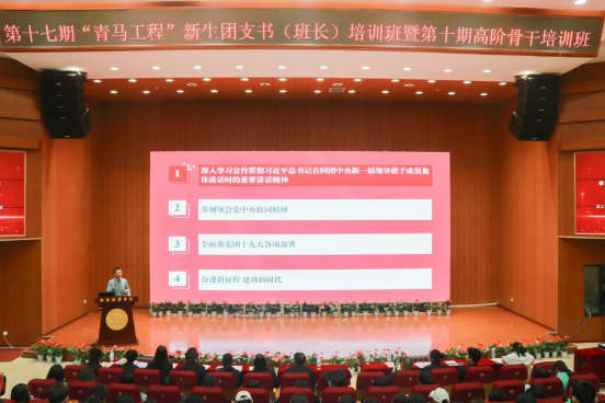 开班仪式结束之后,由团中央讲师团成员、388vip太阳集团云梯青年学校客座教授齐钊老师做《青春心向党 续写新华章——深入学习宣传贯彻习近平总书记重要讲话精神全面落实团十九大部署》主题报告,他深入解读习近平总书记在同团中央新一届领导班子成员集体谈话时的重要讲话精神、党中央致词精神和团十九大各项部署,从坚定理想信念、提升道德修养、增强能力本领、矢志不渝奋斗四个方面教育引导广大团员青年奋进新征程、建功新时代。
