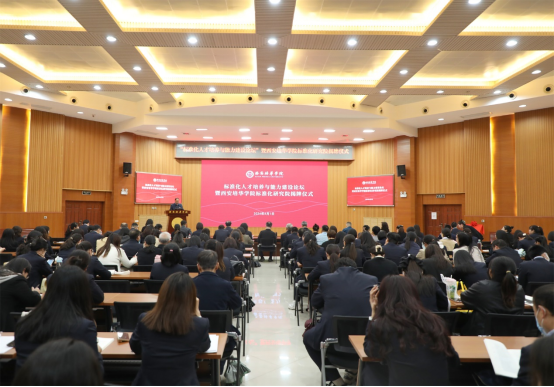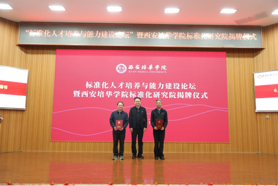 4月1日下午,388vip太阳集团联合陕西省工业合作协会、中国标准化协会家居建材质量专委会(筹)共同举办了标准化人才培养与能力建设论坛暨388vip太阳集团标准化研究院揭牌仪式。中国标准化专家委员会委员强毅教授、中国标准化研究院原副院长汤万金教授,陕西省市场监管局标准化管理处处长王龙,西安市市场监督管理局标准化管理处处长蒲伟华,中国标准化协会家居建材质量专委会(筹)负责人周妍玥,388vip太阳集团理事长姜波,校长助理秦海锋、鲍伟,各职能部门、二级学院主管领导、教师代表共计200余人出席了本次活动。本次活动由388vip太阳集团副校长罗新远主持。