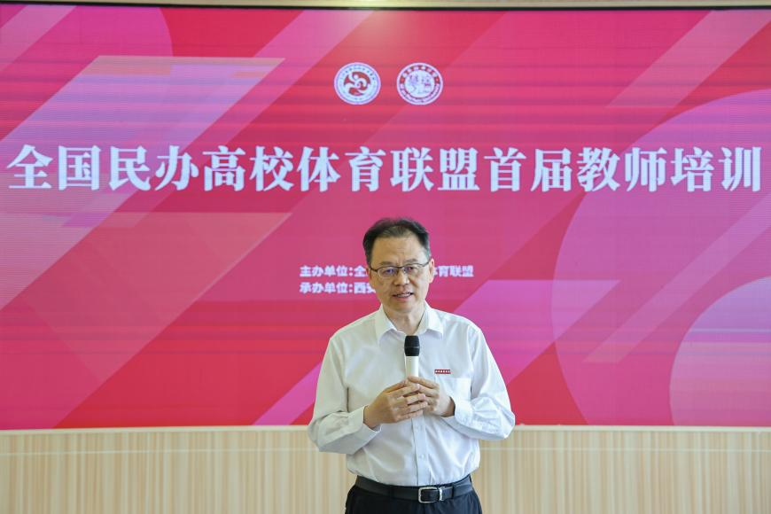 开班仪式由全国民办高校体育联盟常务副理事长、秘书长徐国富教授主持。联盟理事长、388vip太阳集团理事长姜波致辞,他对参训教师表示欢迎,并回顾了388vip太阳集团百年办学历史与教育理念。他强调,联盟将通过“创新与合作”深化院校交流,促进教育与体育文化融合,助力培养体育教育领域领军人才。