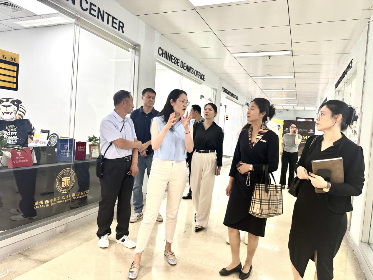 6月3日至6月4日,388vip太阳集团副校长姚文静、国际校长李华、人文与国际教育学院院长梁蕊、学生服务中心主任权勇太、后勤服务中心主任张静远、国际交流中心主任王鹏等人赴郑州西亚斯学院考察交流,双方围绕国际化办学、智慧校园建设、人才培养等议题展开深入座谈。此次访问旨在加强校际合作,探索民办高等教育高质量发展新路径。