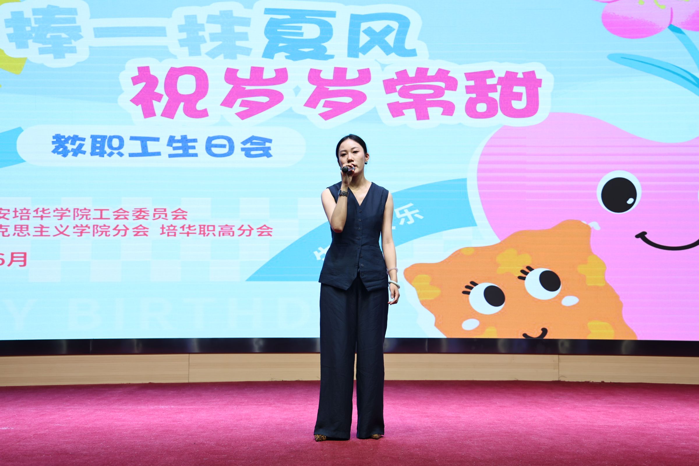 为增强教职工的凝聚力与归属感,传递学校对教职工的关怀,6月9日,学校在沁园餐厅教职工餐厅举办了以“捧一抹夏风 祝岁岁常甜”为主题的教职工生日会。本次活动由校工会委员会主办,马克思主义学院分会、培华职高分会协办,6月至8月生日的教职工及校领导共同参与。