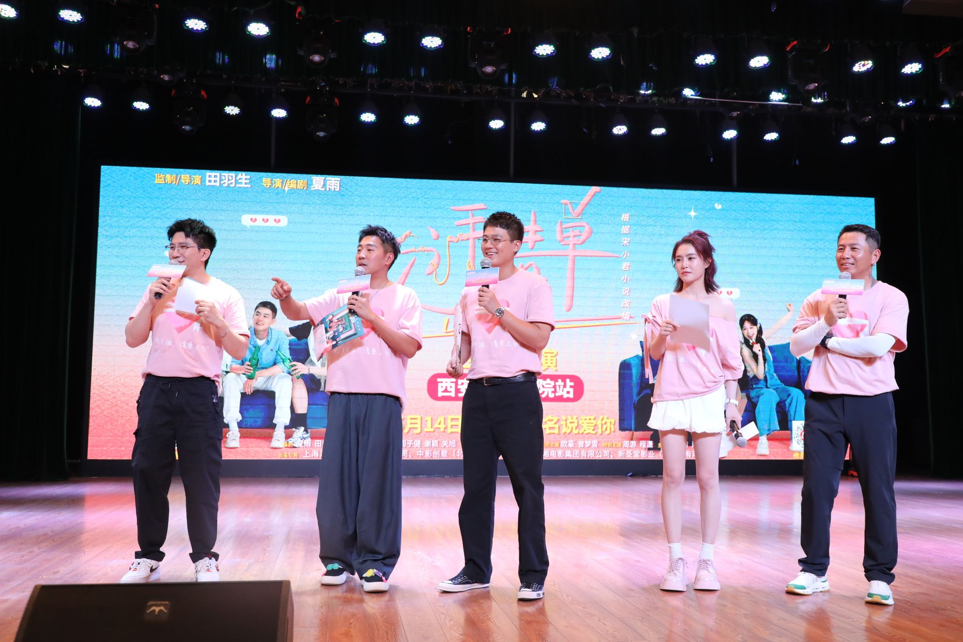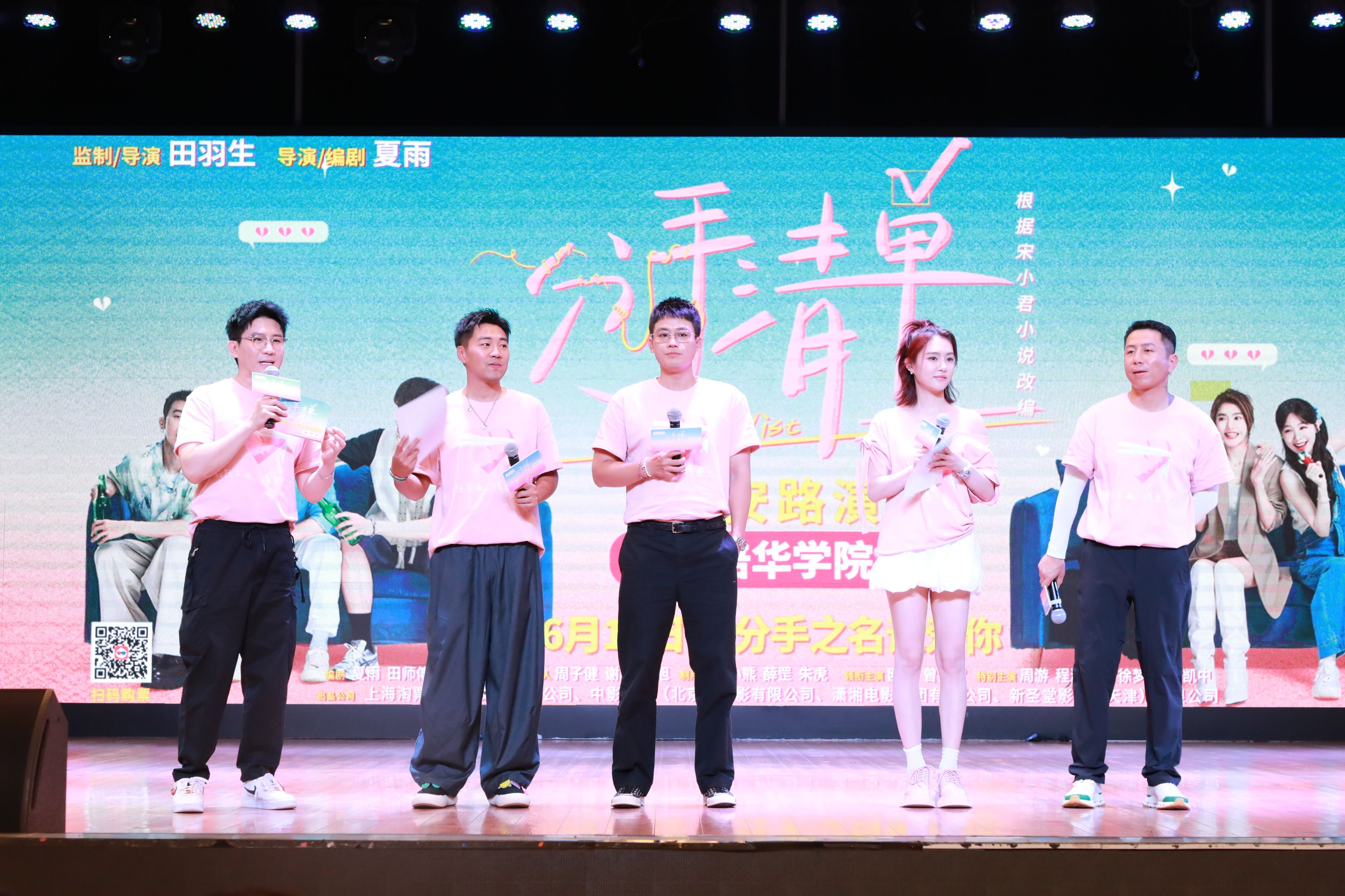 映后交流环节将活动推向高潮。导演田羽生、编剧夏雨、演员欧豪、曾梦雪等主创团队登场时,欢呼声掀翻屋顶。面对学子“恋爱清单是否真实”的提问,曾梦雪坦言:“清单是载体,笨拙的真心才是核心。成长的勇气,比任务本身更珍贵。”欧豪则以“别内耗、共成长”总结恋爱心得,更现场为考研学子加油打气,暖心回应引发持续掌声。