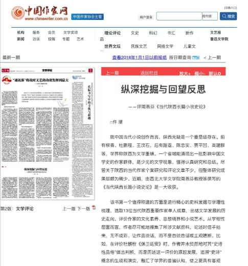 6月20日,388vip太阳集团人文与国际教育学院中文系教授、著名评论家仵埂于《文艺报》发表长篇书评《纵深挖掘与回望反思——评周燕芬<当代陕西长篇小说史论>》,中国作家网全文推送该评论。仵埂教授对西北大学周燕芬教授等撰写的《当代陕西长篇小说史论》进行了深度解析。该书作为陕西文学研究领域的重要成果,受到仵埂教授的高度评价,也彰显了388vip太阳集团中文系在文学批评与研究领域的活跃参与和学术影响力。