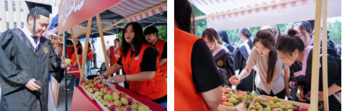 盛放,枝头的硕果与指尖传递的情谊交响。盛夏骄阳终不负辛勤守候。昔日的幼苗已茁壮成长,翠叶盈风,瓜果飘香,终南校区种植园迎来了它最丰盈的时节。一场洋溢着青春活力与真挚情感的丰收庆典在此上演:采摘现场,欢声笑语与清甜果香交织弥漫。镜头定格在动人的一幕——大一学子踮起脚尖,指尖轻托着晨露浸润、泛着红晕的蜜桃,小心翼翼地摘下,一枚枚饱含心意的桃子成了跨越年级情谊的最佳信物。当毕业生咬下那鲜嫩多汁的果肉,清甜在舌尖绽放,更有一股暖流直抵心田——这份来自学弟学妹的祝福,带着泥土的芬芳与青春的纯粹,为他们的启程之路增添了一份温润而坚定的力量。劳动的果实,此刻升华为人文关怀的纽带。