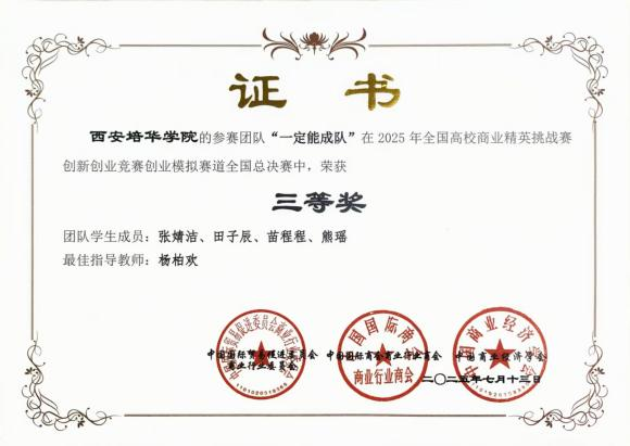 自比赛启动以来,培华学子积极参与,经初选共派出四支队伍参赛。通过知识赛和创业模拟等多个校赛环节的激烈竞争,最终两支队伍成功晋级全国总决赛。2025年7月13日,在全国总决赛中,面对来自全国各地高校的优秀团队,我院学子沉着应对、团结协作,展现出良好的专业素养与创新潜力,经过多轮比拼,最终取得全国一等奖和三等奖的优异成绩。