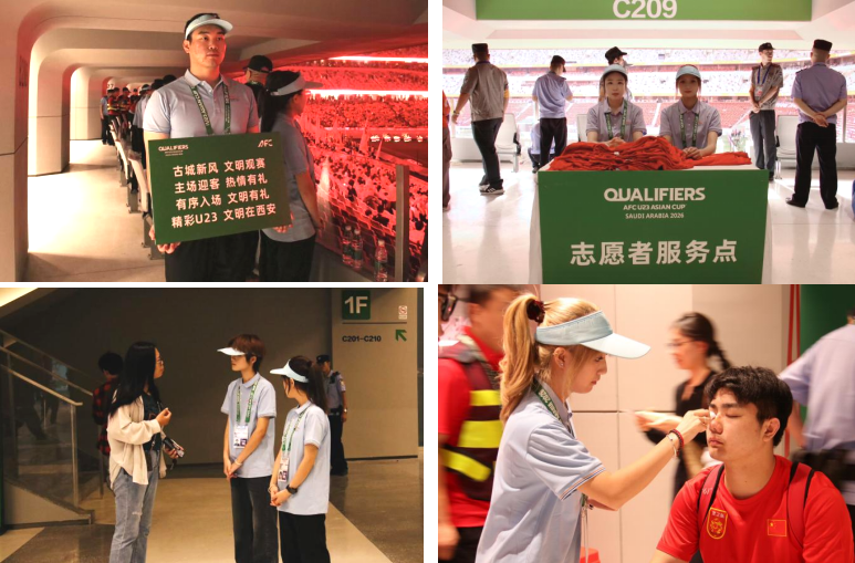 从观众服务、票务检查,到路线引导、物资发放,志愿者的身影遍布赛场每个角落。无论是烈日下的室外引导,还是反复细致的票务核验,他们都以严谨的态度和温暖的笑容面对每一位参与者,全面展现出西安青年热情好客、开放自信的精神风貌。志愿者卫倚卓表示:“在志愿服务岗位上,我感受到了勇气与担当。感谢球迷们的信任,我们定不负众望,展现青年的风貌与朝气。”