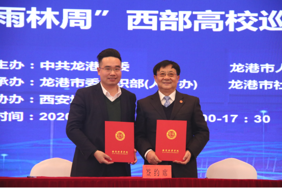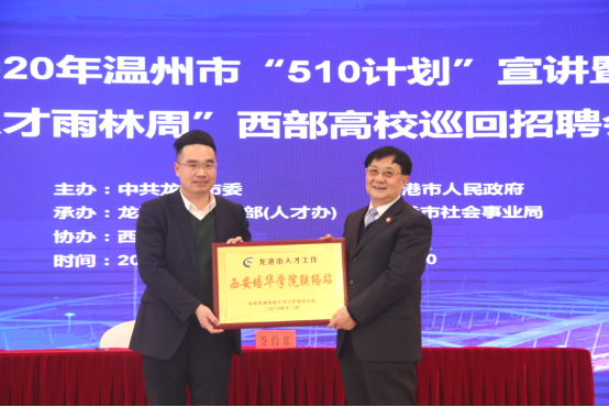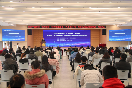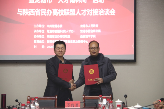 为认真贯彻落实党中央、国务院关于“六稳”、“六保”的决策部署,进一步做好陕西省 2021 届民办高校毕业生就业工作,为民办高校毕业生提供更多的就业岗位和就业机会,浙江省温州市龙港市市委、市政府于 2020 年 12 月 15 日—16日在我校召开“浙江省温州市 “510 计划”暨龙港市 2020 年“人才雨林周”活动与陕西省民办高校联盟人才对接洽谈会”。