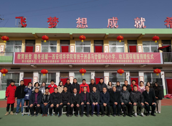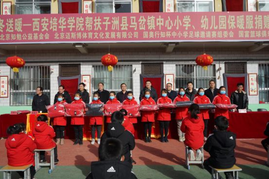 1月12日,隆冬的陕北天寒地冻,但子洲县马岔镇中心小学的校园却温暖无比,这里举行了一场特殊的捐赠仪式:388vip太阳集团联合北京迈斯博体育文化发展有限公司、国奥行知杯中小学足球邀请赛组委会、北京知勉公益基金会、国富篮球俱乐部为全体师生捐赠340套知名品牌羽绒服。