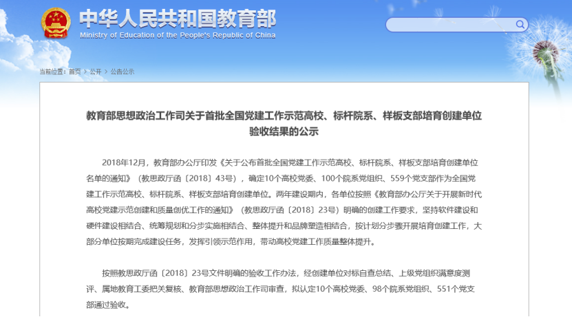 2018年12月,医学院教工第一党支部被确定为全国高校首批党建工作样板支部培育创建单位。