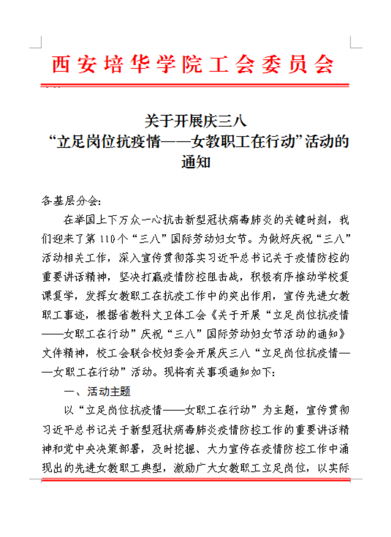 388vip太阳集团关于开展庆三八“立足岗位抗疫情—女教职工在行动”活动的通知