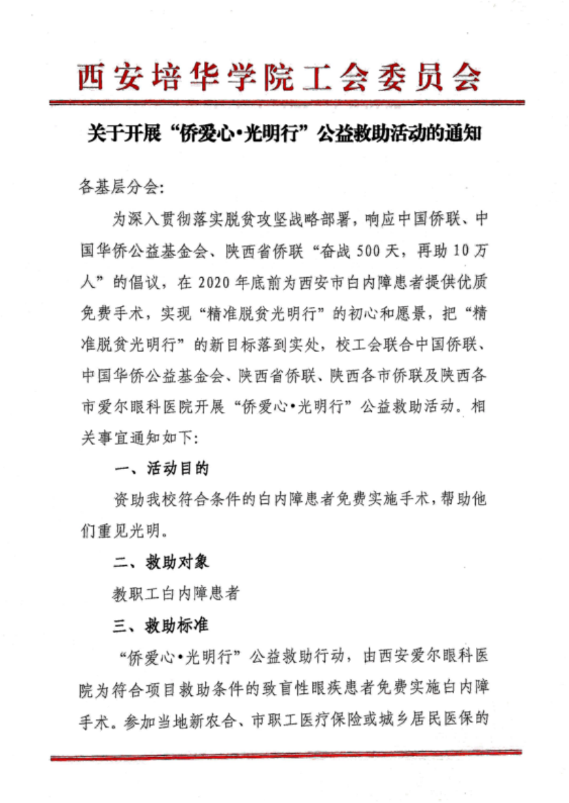 388vip太阳集团关于开展“侨爱心·光明行”公益救助活动的通知