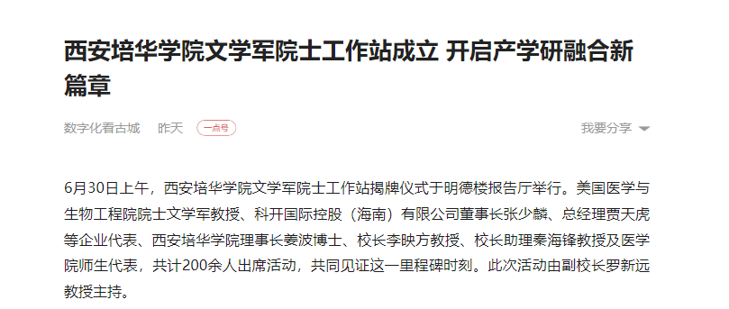 活动最后,科开国际董事长张少麟表示,此次揭牌成立的文学军院士工作站、全民健康管理研究院、干细胞产业研究院及科开产业研究院,是产教融合深度实践的里程碑,更是双方面向未来、服务国家战略的关键布局。科开国际将全力以赴,以企业资源赋能科研创新,以市场需求牵引人才培养,与培华学院共同打造“产学研用”一体化标杆,为百姓健康谋福祉,为区域产业升级添动力。