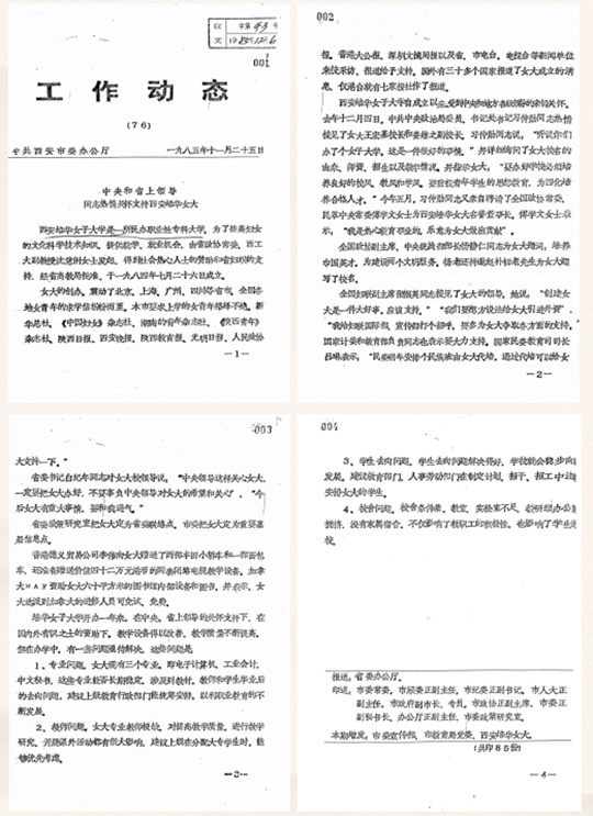 中共西安市委1985年第76期《工作动态》刊发习仲勋同志接见培华女大校领导