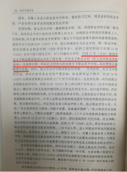 由陕西人民出版社出版的《西安市教育志》中记载了学校的起源和性质