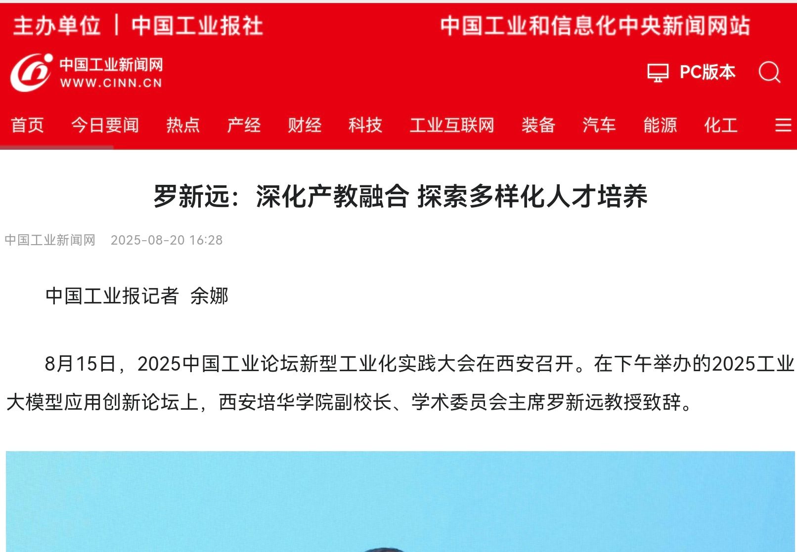 “我们渴望与行业专家、企业代表,共同探讨如何在AI赋能工业、智能制造人才培养、关键技术联合攻关、学生实习就业、员工继续教育等领域,开展多层次、多形式的实质性合作。我们相信,通过政、产、学、研、用各方的紧密携手,一定能汇聚起更强大的创新合力,共同谱写产教深度融合、协同创新发展的新华章。”罗新远说(作者:余娜)